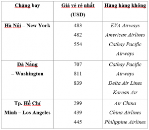 Ngoài vé máy bay đi Mỹ của hãng Vietnam Airlines, PHƯƠNG VY còn cung cấp giá vé của nhiều hãng hàng không quốc tế với mức giá tốt hơn như United Airlines, Japan Airlines, Cathay Pacific… Liên hệ 0908549998 để biết thêm chi tiết.